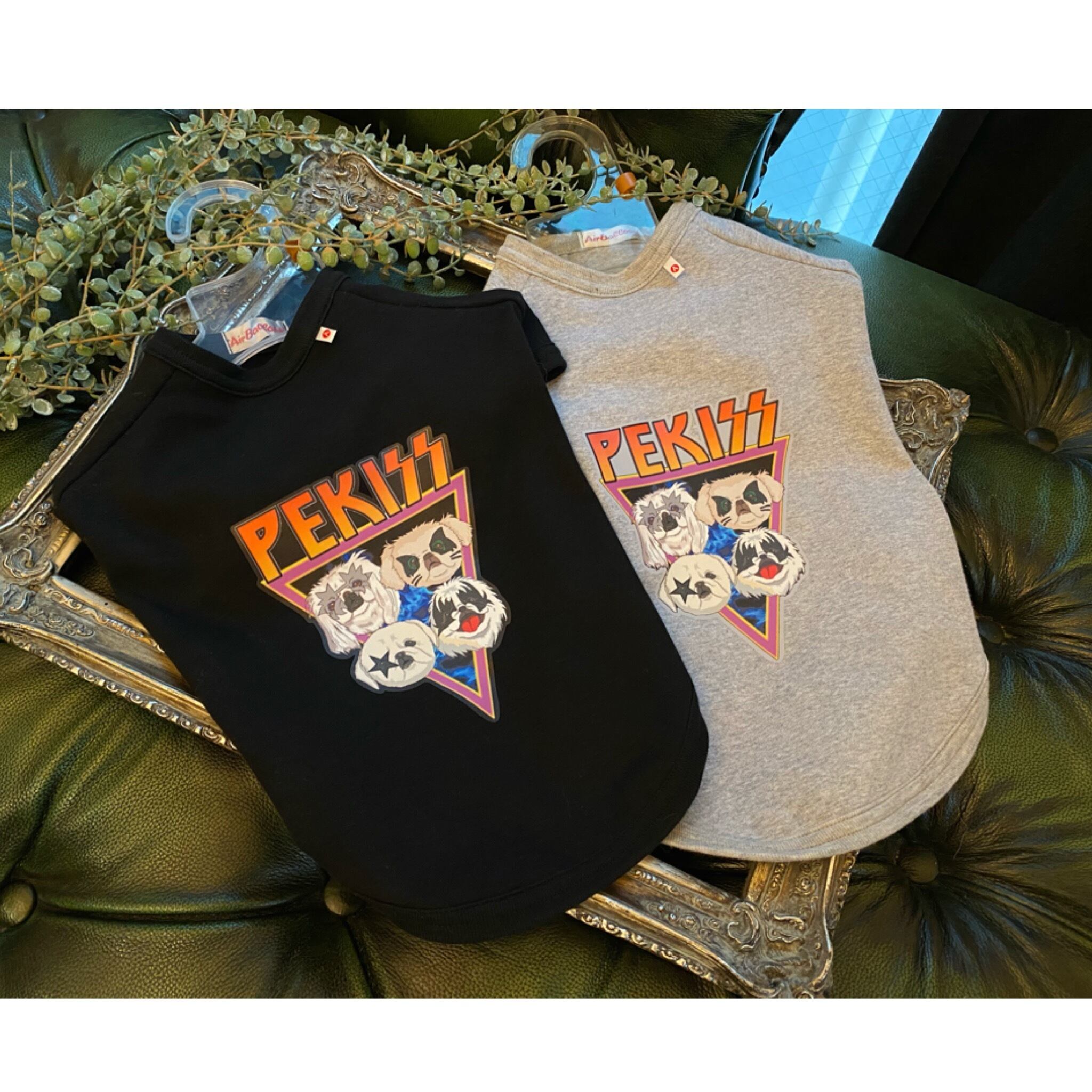 ペキニーズロックバンド風Tシャツのドッグウェアです。